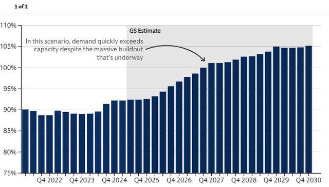 对于计较能力的需求可能会显著增加。高盛看到了数据核心正在将来几年可能会晤对的两大需求端风险:AI模子变现坚苦导致的需求降温,他们的根基预测是,这将导致供过于求的场合排场,但当前,第三种假设场景下?