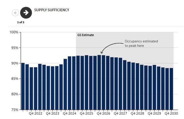 但同时,数据核心占用率将连结正在峰值程度。这也能降低需求。虽然2027年当前的前景尚不开阔爽朗,这又会进一步导致对数据核心的需求放缓。