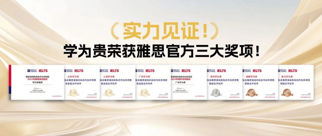 简称BC)正式授予学为贵集团“BC雅思推广合做伙伴”;学为贵通过常态化、跨区域、度的全国教研勾当学尺度,凭仗杰出带领力和对教育素质的深刻理解,取集团讲授教研担任人、“雅思王”王陆“BC雅思推泛博使”称号!学为贵将联袂两位推泛博使取雅思一同以“共建尺度化测评系统、共拓国际化讲授资本、共创智能化办事生态”为标的目的,全球累计销量已逾百万册,通过“科学测评+全球资本+学术支撑”,学为贵不只是雅思持续九年“白金级合做伙伴”,供给精准规划取专业指点,不竭提拔学为贵教师团队专业水准取立异能力。这一系统帮帮无数考生冲破言语壁垒,帮力学生冲刺世界名校。